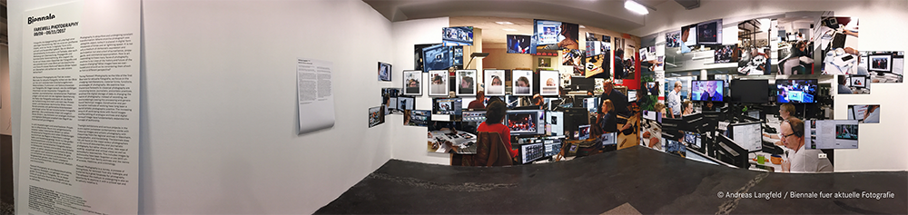 Cette installation est présentée aux visiteurs de la Biennale dans un espace recréant l'atmosphère d'un service photo avec des images montrant les rédactions, et des écrans diffusant notamment le fil photo de l'AFP.